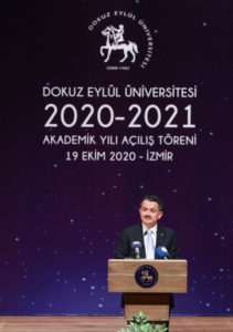 Dokuz Eylül Üniversitesi’nin 2020-2021 Akademik Yılı açılışında konuşan Tarım ve Orman Bakanı Bekir Pakdemirli, Türkiye’nin geleceğin bilginin gelişmesi ve bilimsel çalışmaların arttırılmasıyla olacağını söyledi. Dokuz Eylül Üniversitesi’ne bu konuda büyük iş düştüğünü kaydeden Pakdemirli, “Ülke olarak daha iyi yerlere gelmek için bilgi ve entelektüel seviyemizi yükseltmeliyiz. Önümüzdeki 30 yıllık dönemde İzmir’e ve Dokuz Eylül Üniversitesi’ne önemli görevler düşüyor. Gençlerimiz kendilerini geliştirmek için çalışmalılar. Başarısızlıktan korkmadan, ders çıkararak kendilerini geliştirmeliler” dedi. DEÜ Rektörü Prof. Dr. Nükhet Hotar da, “Ulusal ve uluslararası alanda nitelikli akademik faaliyetleriyle ön plana çıkan üniversitemiz, ülkemizin ve insanlığın selameti için var gücüyle çalışmaktadır” diye konuştu.