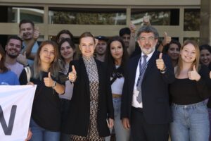 Dokuz Eylül Üniversitesi’nin üniversite hayatının tüm alanlarına yayılan, çok yönlü ve uzun vadeli bir uluslararasılaşma stratejisi belirlediğini ifade eden Rektör Hotar, uluslararasılaşma kapasitesini artırmayan üniversitelerin bilime dayalı küresel rekabette geri planda kalacağına inandıklarını söyledi. Bu noktada DEÜ’de, insan kaynağının her geçen gün geliştirildiğine vurgu yapan Rektör Hotar, “Üniversitemizin eğitim-öğretim, araştırma-geliştirme ve toplumsal katkı süreçlerini uluslararası anlayışla bütünleştiriyoruz. Uluslararası düzeyde projeler üreterek, üniversitemizin geleceğini sağlam temellere oturtuyoruz. Yükseköğretimde uluslararasılaşmanın kentimize ve ülkemize büyük katkılar sağlayacağına inanıyor; yaptığımız çalışmalarla bilimde coğrafi sınırları ortadan kaldırıyoruz” diye konuştu. Ziyaret sonrasında öğrenciler, DEÜ Rektörlük Binası önünde Rektör Hotar ile hatıra fotoğrafı çektirdiler.