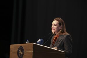 Açılış konuşmalarının ardından DEÜ Fen Fakültesi Dekanı Prof. Dr. Aylin Alın’ın moderatörlüğünü yaptığı Güçlü Kadın Güçlü Toplum Paneli’ne geçildi. Prof. Dr. Alın, Dokuz Eylül Üniversitesi’nin kadın erkek eşitliğine büyük önem verdiğini ve bunun istatistiklere yansıdığını ifade etti. Alın, “Üniversitemizin ilk kadın Rektörü Prof. Dr. Nükhet Hotar hocamız görevine devam ediyor. Ayrıca kadın Rektör Yardımcımız bulunuyor. İdari personelin yüzde 55’i, akademisyenlerin yüzde 51,4’ü, öğrencilerimizin yüzde 44’ü kadınlardan oluşuyor. Yani kadınlar, üniversitemizin geleceğine yön veriyor” diyerek sözü Dışişleri Bakanlığı İzmir Temsilcisi Büyükelçi Naciye Gökçen Kaya’ya bıraktı.