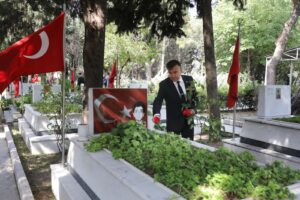 Dokuz Eylül Üniversitesi (DEÜ) Rektör Yardımcısı Prof. Dr. Hasan Murat Tanarslan, İzmir Valiliği tarafından düzenlenen 15 Temmuz Şehitlerini Anma, Demokrasi ve Milli Birlik Günü etkinlikleri kapsamında Kadifekale Hava Şehitliği’nde düzenlenen törene katıldı. Saygı duruşu ve İstiklal Marşı ile başlayan tören programında, Kur’an-ı Kerim Tilaveti ve edilen duaların ardından şehitlerin kabirleri ziyaret edildi ve protokol üyeleri tarafından karanfil bırakıldı.