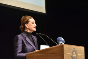 Dokuz Eylül Üniversitesi’nin ecdadımızın tarihini, medeniyetini, insanlığa katkılarını anlatacak her çalışmaya destek verdiğini belirten DEÜ Rektörü Prof. Dr. Nükhet Hotar, “Uluslararası kongremizle, Muhterem Cumhurbaşkanımız Sayın Recep Tayyip Erdoğan tarafından 2021’e adları verilen değerlerimizin aziz milletimiz ve Türk kültürü için önemine dikkat çekiyoruz. Türk fütuhat hareketinin Anadolu’yu vatan tutma gayretleri, 1071 tarihindeki Malazgirt Meydan Muharebesi ile yeni bir dönemin kapılarını açtı. Elbette, savaş ve kılıç ile kalıcı olmak ya da kudretli hükümdarın ardında saf tutmak, hiçbir toplum için yeterli değildi. Buradaki esas mesele, özü, yaşayışı ve kültürü ile itibariyle değerlerini, zamanın ve hayatın getirdiği iklimde muhafaza edebilmekti. O yüzden; Yunus Emre’nin şiirleri medeniyet dilinin abideleri; Hacı Bektaş Veli’nin fikirleri şuuru aydınlatan sonsuzluğun merhalesidir. Ahi Evran’ın anlayışı zanaatı icra etmenin ve dayanışmanın simgesidir. Dolayısıyla onlardan aldığımız miras, gönülleri birbirimize; dilimizi örf ve âdetimize; kültürümüzü, bin yıllık yurdumuzun sinesine nakşetmiştir” dedi.