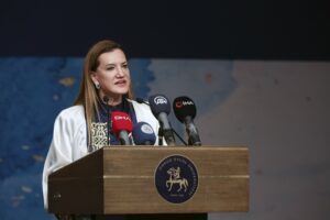 Üniversitelerin genç beyinlerin ve sağlıklı nesillerin yetiştirildiği merkezler olduğunu ifade eden Bakan Kurum, “Son 20 yılda, Cumhurbaşkanımızın liderliğinde; eğitime, öğretime, üniversitelerimize çok büyük yatırımlar yaptık. 2002 yılında 76 olan üniversite sayımızı 207’ye çıkardık. Ülkemizin dört bir yanında kurduğumuz üniversitelerle ihtisaslaşmayı her şehrimizde yaygınlaştırdık. Üniversitelerimiz dünyada da çok büyük başarılara imza atıyorlar. Dokuz Eylül Üniversitemiz de köklü geçmişiyle kendi gelenekleriyle eğitim kurumlarımız arasında seçkin üniversiteler arasında yer alıyor. DEÜ, ürettiği değerlerle, yetiştirdiği uzmanlarla hem İzmir’imizin hem ülkemizin bilim ve akademik hayatına çok önemli katkılar sağlamaya devam ediyor. Geniş eğitim kadrosuyla; İzmir’in dört bir yanında, onlarca enstitü ve fakülteleriyle, 50’yi aşkın uygulama ve araştırma merkeziyle eğitim ve öğretim anlayışını başarılı bir şekilde sürdürüyor. Nükhet Hocamız üniversite hakkında bir konu olduğu zaman gerek Cumhurbaşkanımız gerek Bakanlığımız nezdinde her türlü çalışmalarını sürdürüyor. Rektörümüz Nükhet Hotar başta olmak üzere geçmişten bugüne üniversitemize hizmet eden hocalarımıza, öğrencilerimize teşekkür ediyoruz” diye konuştu.
