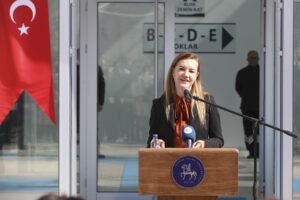 Yabancı dil öğrenmenin yanında Türkçenin de ihmal edilmemesi gerektiğini her fırsatta ve platformda vurguladıklarını belirten Hotar, “Güzel Türkçemizin uluslararası bilim dünyasının dili olması için daha çok çalışmamız; terimlerin ve kavramların kaynağı olmamız gerektiğine inanıyoruz. Biz, büyük hedefleri olan Türkiye’nin idealleri olan bir yükseköğretim kurumuyuz. Mesleki ve Çevresel Hastalıklar Hastanesi’nin temelini de atsak; Ortak Derslikler Binasını hizmete de alsak; Veteriner ve Diş Hekimliği Fakültelerini de kursak, Olimpik Yüzme Havuzunu ve spor tesisleri de açsak, çalışmaya ara vermeyeceğiz. Aklın ve bilimin yolunda ilerleyecek; yeni sorumluluklarımızın hakkını vermek için gayret göstereceğiz. Bu eserin üniversitemize kazandırılmasında emeği geçen bütün mensuplarımıza, paydaşlarımıza ve destekçilerimize teşekkürlerimi sunuyorum. Yüksekokul binamızın ülkemize, İzmir’imize hayırlı olmasını diliyorum” açıklamasında bulundu.
