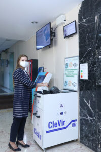 Küresel koronavirüs pandemisinin etkilerini ortadan kaldırmak için Dokuz Eylül Üniversitesi’nin ilk günden bu yana yoğun bir çaba gösterdiğini belirten DEÜ Rektörü Prof. Dr. Nükhet Hotar, “Bu kapsamda maske, mesafe ve temizlik uygulamalarını destekleyen projelerimizi de kararlılıkla sürdürüyoruz. Üniversitemiz bünyesinde üretilen CleVir cihazı da uzun zamandır günlük hayatımızın bir parçası olan bulaş riski yüksek maske ve eldivenlerin nitelikli bir şekilde toplanmasında büyük bir görev üstleniyor. Söz konusu atıkların temas edilmeden sterilize bir şekilde bertaraf edilmesine olanak sağlıyor” dedi.