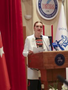 DESEM-15Temmuz Şehitler Salonu’nda gerçekleştirilen ‘Vatan Aşkına O Gece Yaşananlar Paneli’nin açılış konuşmasını yapan DEÜ Rektörü Prof. Dr. Nükhet Hotar, 15 Temmuz 2016’daki hain FETÖ kalkışmasında Türkiye’nin yekvücut hareket ederek kalkışma girişimini engellediğini söyledi. Rektör Hotar, “Türkiye Cumhuriyeti, istiklal ve istikbal sevdasını taşıyan asil milletimizin ortak iradesinin ürünüdür; direnişinin sembolüdür; milli mücadelesinin baş tacıdır. 15 Temmuz ihanetini ülkemize yaşatan hainlerinin bilmediği ve anlayamadığı hakikatlerden birisi de budur. O yüzden ecdadımızın kanı ve gözyaşı ile ıslanmış; acı ve çile ile yoğrulmuş bu topraklarda, milletimizi silahla sindireceğine inanmak hem hezeyandır hem de kendini bilmezliktir. Bundan dolayıdır ki 15 Temmuz, ihanet ve alçaklığın şekil bulmuş halidir” dedi.