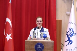 DEÜ Rektörü Prof. Dr. Nükhet Hotar, 15 Temmuz Şehitler Salonu’nda gerçekleştiren etkinlikte sözlerine, Dokuz Eylül Üniversitesi’nin bugünlere gelmesinde emeği geçenlere teşekkür ederek başladı. Günümüzde 8.8 milyon metrekare alanı bulunan DEÜ’nün, o yıllarda sadece birkaç binadan meydana geldiğini ifade eden Rektör Hotar, “Üniversite olarak aradan geçen yıllarda duruşumuzdan ve istikametimizden ödün vermedik. Geldiğimiz noktada ise 75 bin mensubu olan ve yaygın bir eğitim ağına sahip büyük bir aileye kavuştuk. Bizim gibi kurumların öyküleri vardır, öykülerini kendileri yazarlar, içinde yer alan aktörleri, başlangıcını, sonucunu bir şekilde yönlendirme şansına sahip olurlar. Biz de göreve başladığımız günden beri üniversitemizin öyküsünü yazalım istedik. Bu amaçla tüm ekibimizle, pandemiye rağmen gece gündüz çalıştık, birçok başarıyı elde ettik” dedi.