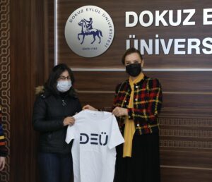 DEÜ SKS’ye bağlı Öğrenci Topluluklarından gelen gönüllü öğrencileri ağırlayan Rektör Hotar, “Projemizi duyar duymaz bizlere destek vermek ve çalışmalarda yer almak amacıyla ziyaretimize gelen gönüllü öğrencilerimizin samimiyeti ve ilgisi, bizleri gerçekten mutlu etti. Onlarla birlikte, bu özel projenin amacına ulaşmasını sağlayacak ve engelli öğrencilerimizin yanında durmaya devam edeceğiz. Gönüllülerimize teşekkür ediyoruz” ifadesinde bulundu. Görüşmenin ardından Rektör Hotar, ziyaretine gelen öğrencilere tişört hediye etti.