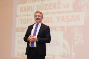 Geniş katılımla gerçekleştirilen konferansta İzmir İl Emniyet Müdürü Hüseyin Aşkın, kamu düzeninin tesisi ve korunması hakkında bilgiler verdi. İzmir’in dünyanın en güvenli kentleri arasında yer aldığından bahseden Aşkın, hayata geçirdikleri asayiş uygulamaları hakkında konuştu. Aşkın, terörle ve uyuşturucuyla mücadelelerinin devam ettiğini, bu konuda kendilerine iletilen en ufak ihbarları bile özenle not alarak haritalandırdıklarını söyledi. Uyuşturucu satılan noktaları tek tek tespit ettiklerini ve zehir tacirlerine göz açtırmamaya kararlı olduklarını anlatan Aşkın, gençleri de bu konuda uyardı.
