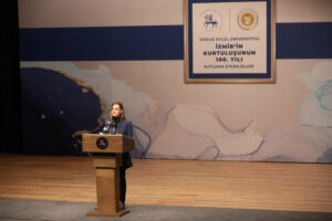 Adını İzmir’in kurtuluşu ve Kurtuluş Savaşı’nın sona ermesini simgeleyen günden alan Dokuz Eylül Üniversitesi (DEÜ), İzmir’in düşman işgalinden kurtuluşunun 100. yılında gerçekleştireceği etkinlikler dizisinin ilkini Tarihçi Prof. Dr. İlber Ortaylı’nın katılımıyla DEÜ Sabancı Kültür Sarayı’nda gerçekleştirdi. TDK Başkanı Prof. Dr. Gürer Gülsevin, Milli Savunma Üniversitesi Rektörü Prof. Dr. Erhan Afyoncu, İzmir il protokolü ve üniversite mensuplarının katıldığı etkinliğe DEÜ öğrencileri de büyük ilgi gösterdi. Etkinliğin açılış konuşmasını yapan DEÜ Rektörü Prof. Dr. Nükhet Hotar, ‘Dokuz Eylül’ gününün kendileri için ayrı bir önem taşıdığını ifade etti.